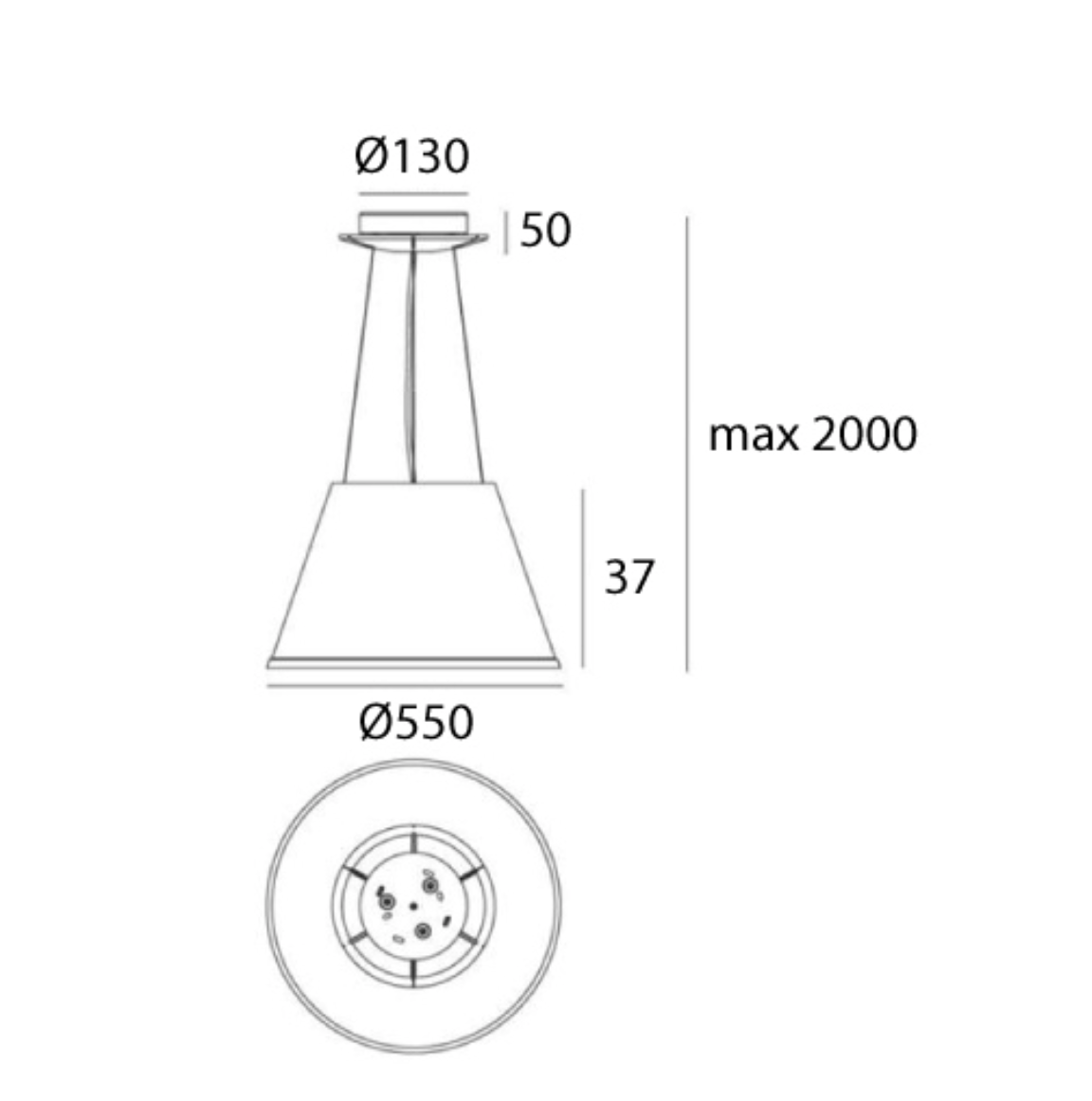 The diffuser, which characterises this lamp family with its materials and texture, can be tilted by 30° and rotated on its own axis to direct the light for reading in Choose Floor, while it remains fixed in the Mega version.