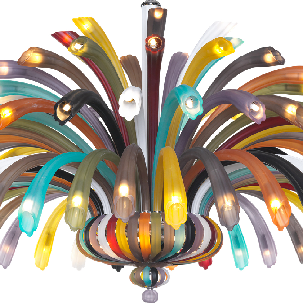 Available in Clear, Frosted, Honey, Fume, White, Champagne or Multicolor. The use of LED bulbs is a must. Bulbs are included.